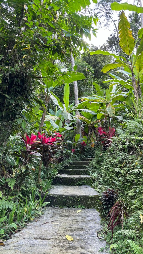 One of the perks of climbing all those stairs however is that you are forced to slow down, find a pleasant seat and take a break at times. Here you will enjoy the breathtaking view of Bali in the distance and the thick green jungle intertwined within the rolling hills of this amazing island. The tour looped us around back to the entrance gate where we started before flopping back down into the vehicle and continued to Ubud for the evening.