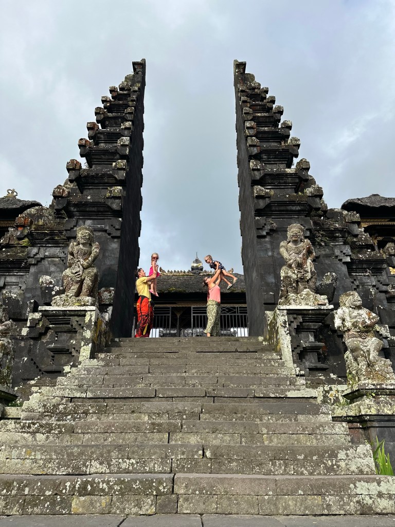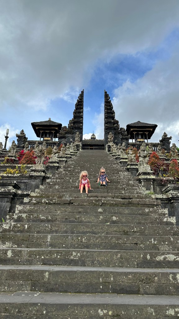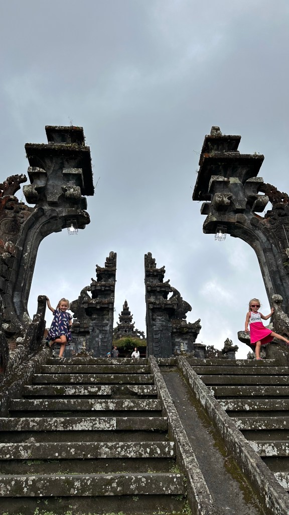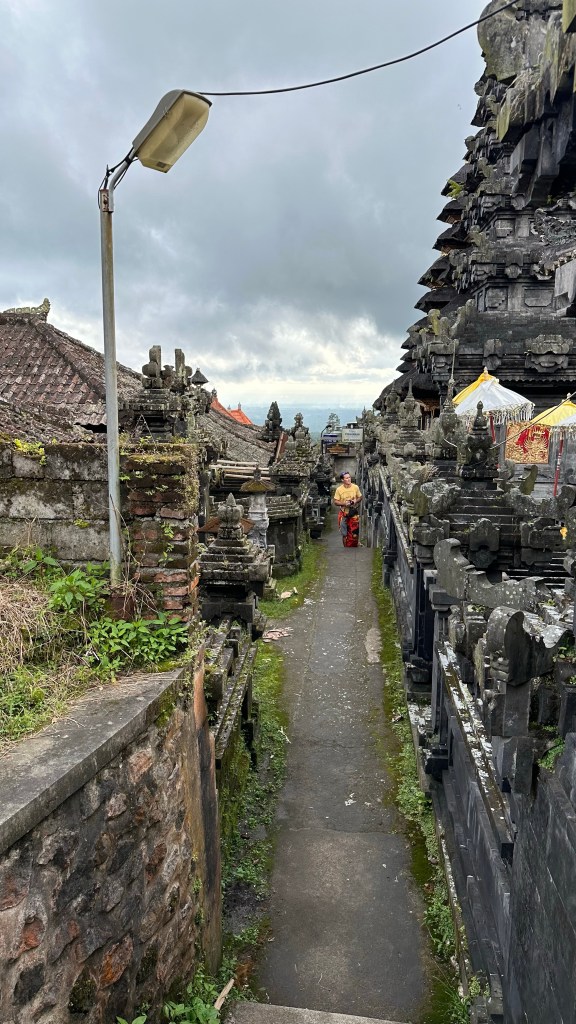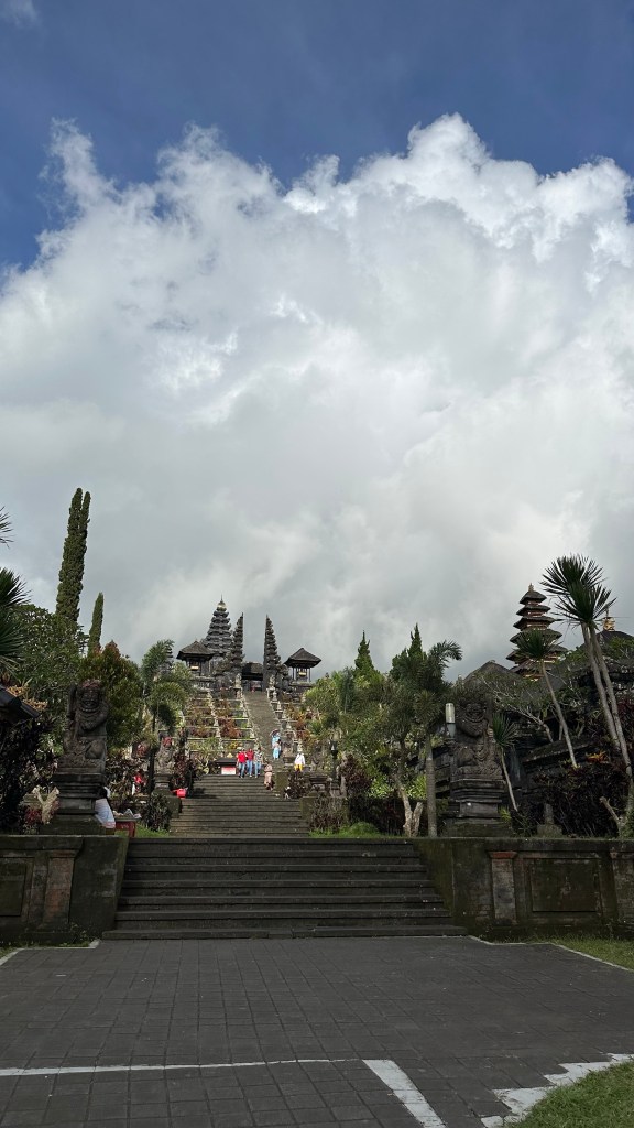 Once back at the car we drove on further to the currently renovated Besakih Temple. This is the largest and holiest of Hindu temple in Bali. Located on the slopes of Mount Agung, the tallest peak in Bali, it actually consists of 23 separate temples enclosed in one location and dispersed over six levels and 100 m elevation gain within the walls. Proper dress code is required to enter the temple and a tour guide is included with your entrance fee. The guide was filled with more knowledge that we could take in for the 1.5 hours we spent there. He did mention that 2024 BC was a monumental year for Hindus and the construction surrounding the temple was in preparation for the influx of religious Hindus travelling from all over the world to pray at this particular temple.