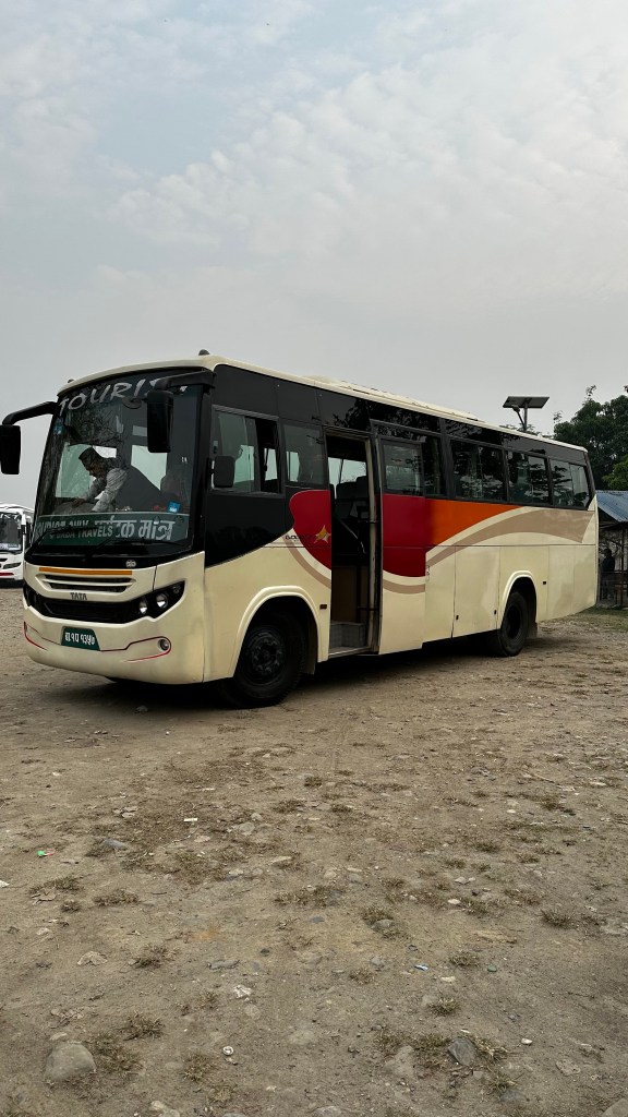 We took a taxi to many awaiting buses that got us to Sauraha from Kathmandu. This was a slow going bus that made many random stops before we finally got outside the city. Then the road became extremely windy and slow for quite awhile. A few quick bathroom/food stops and we finally arrived at the bus station drop off point. This took us SEVEN hours to go the 165 kms.