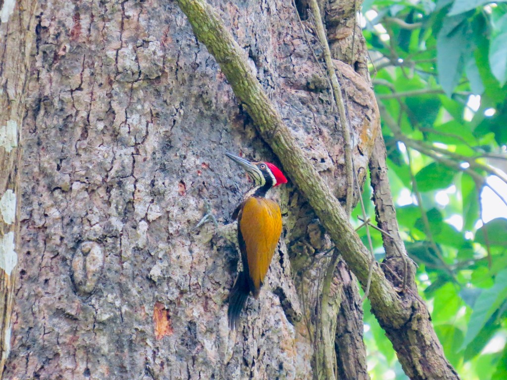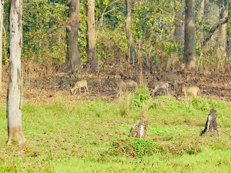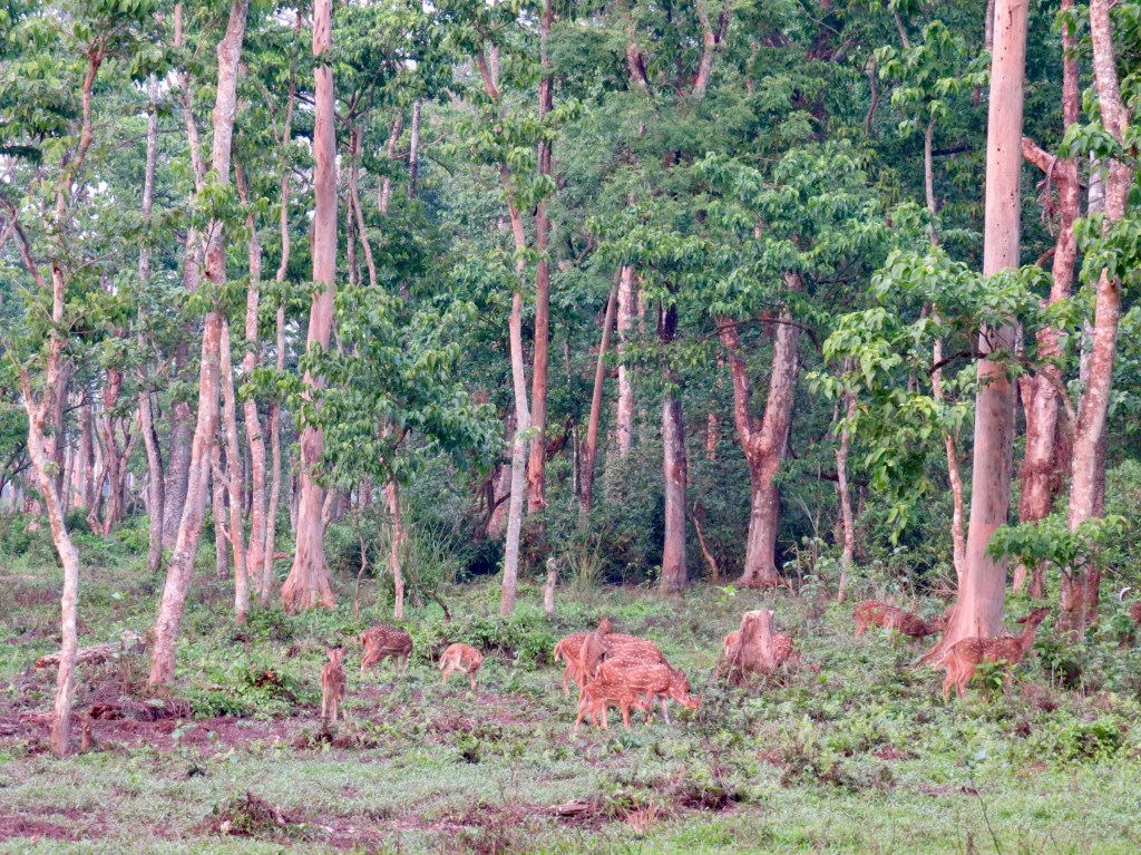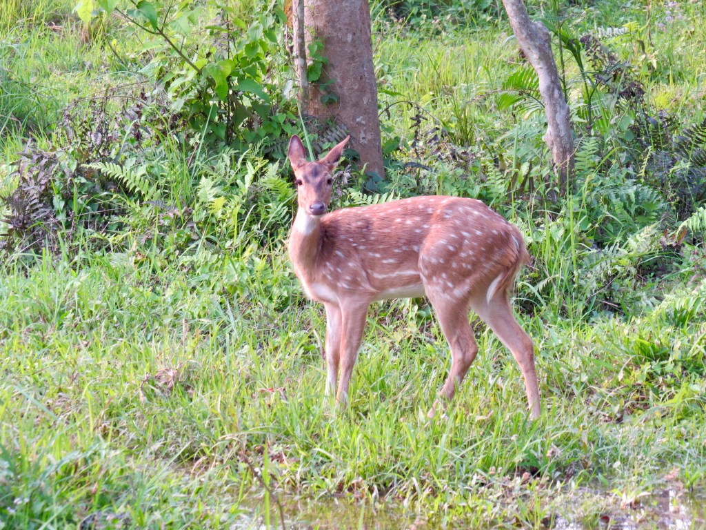 Once back on dry land we had a prompt briefing about the next leg of our morning. We were now taking a 1.5 hour jungle walk through rhino country. Apparently it is best not to wear bright colours and if we find ourselves in a rhinos sight we are to climb a tree or at least stand behind one. We felt so much safer now. But the jungle presented us with no opportunities to get involved with these situations, however there was evidence of both rhino and elephants nearby with means of oversized droppings. We did stumble across a group of spotted deer, many more birds and a wide variety of hardwood trees and climbing vines throughout the canopy.
