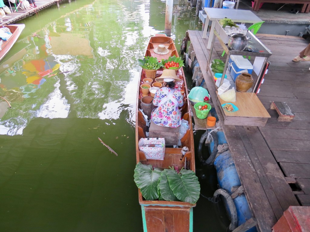 The floating markets are always a must in Bangkok. Some of the more famous ones like the most popular Damnoen Saduak or Amphawa Floating Market can be a fair distance away and have been catering to tourists over the years with the same souvenirs as you can find in the city centre. There are still some traditional boats floating around with local market products and breathtaking opportunities to take photos. Us however, we opted for the more convenient and quieter Taling Chan Floating Market. This was located just over the river and fairly small but still had some of its local Bangkok flare. It is rather difficult to tell what is floating or what is on land so if it is the boats loaded full of vegetables and sizzling woks of food you are after you may want to try somewhere else. After enjoying some lunch and a smoothie we boarded one of the river boats and went for a tour through the channel system for 99 Baht. This quiet behind the scene look had us gazing upon some of the less traditional sights of this amazing city. We spotted one meter long monitor lizards, rickety old houses that seemed unfit to live in and made a stop at a quant temple for a short walk around and an opportunity to feed the unexpected and over abundance of fish that lurked below the surface.