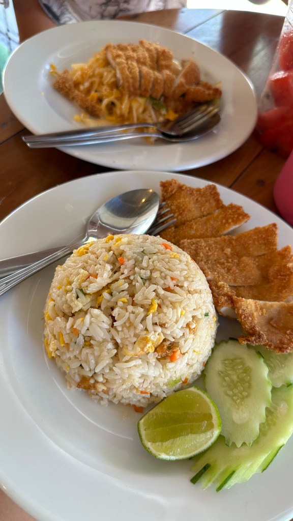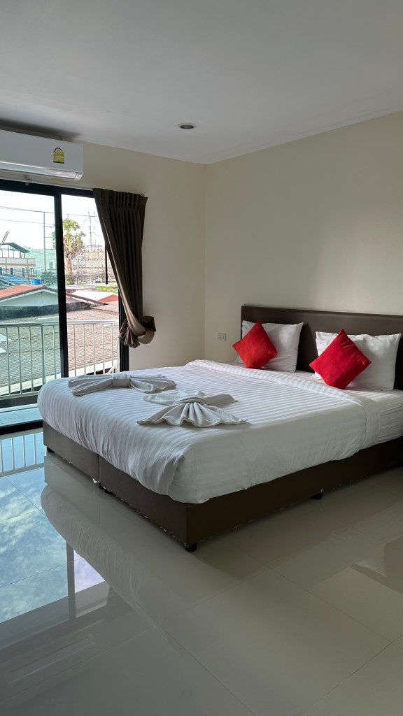 From Bangkok to Phuket; how to travel here? There are a few ways, a night bus, a night train, or to fly. We chose to fly as it was the shortest time wise and wasn’t a lot more expensive then the train for the four of us as we would require a first class car for us with the girls. When you arrive at the Phuket airport you will find yourself far from the main part of town you would like to be in. Arriving late, we got a hotel right near the airport. Dos’s House is a simple five minute walk from the airport. It is basically brand new and the owner is so wonderful. He went out of his way to walk us to find something to eat after we arrived. Unfortunately everything was closed and we had to pick up food from 7/11. We purchased some cup-a-soups along with some microwavable sandwiches and chips and water.