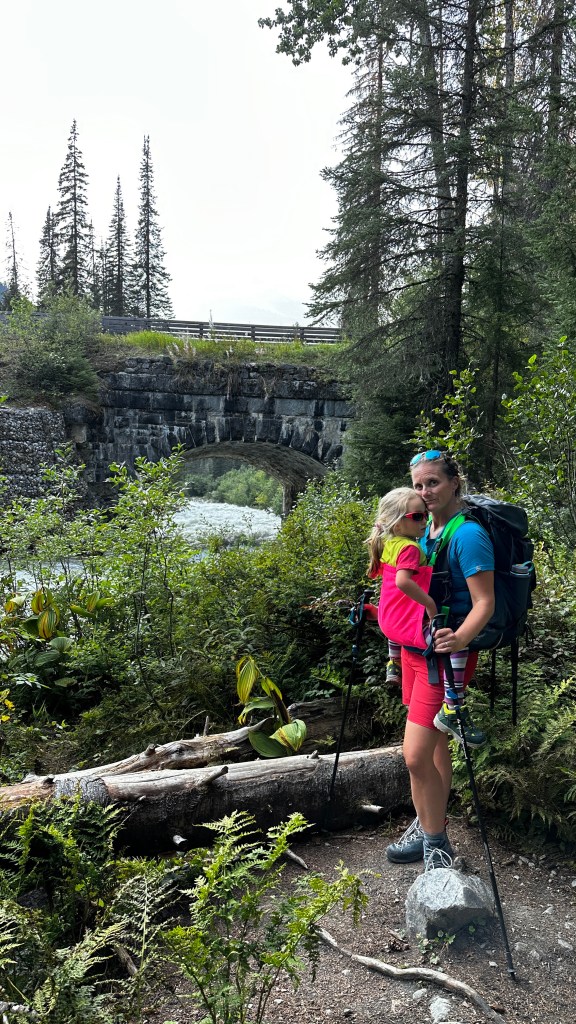 We then pushed on for the remaining 6 kms of steep downhill. This is where the real challenge came. By now we were all tired and just wished we could be back at the trailhead. We were all starting to feel it in our legs and feet. One of the girls started really expressing her feet hurt, mainly her toes, and while my knee had started to bother me I didn’t feel I was in a position to start carrying her. We slowly pushed on while we welcomed the beautiful distractions of waterfalls and crossing bridges. The girls were champs and even though they each had a small fall or two going down, they still managed to laugh it off and push on. 200 metres from the end, one of the girls just crumpled into a ball on the trail and expressed she was done, couldn’t hike another step because of her feet. I then pulled out the Trail Magik, popped her in and carried her the remainder. Once we were back at our campsite we all pulled our boots off and indeed it displayed her boots were too small for a l the downhill punishment.