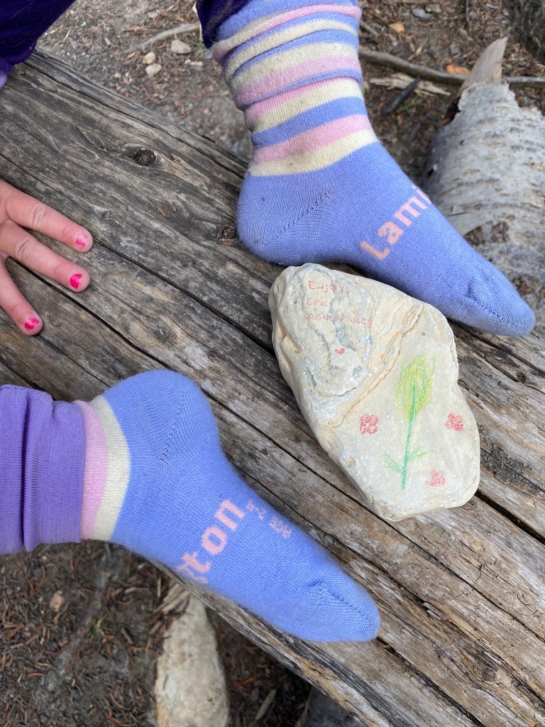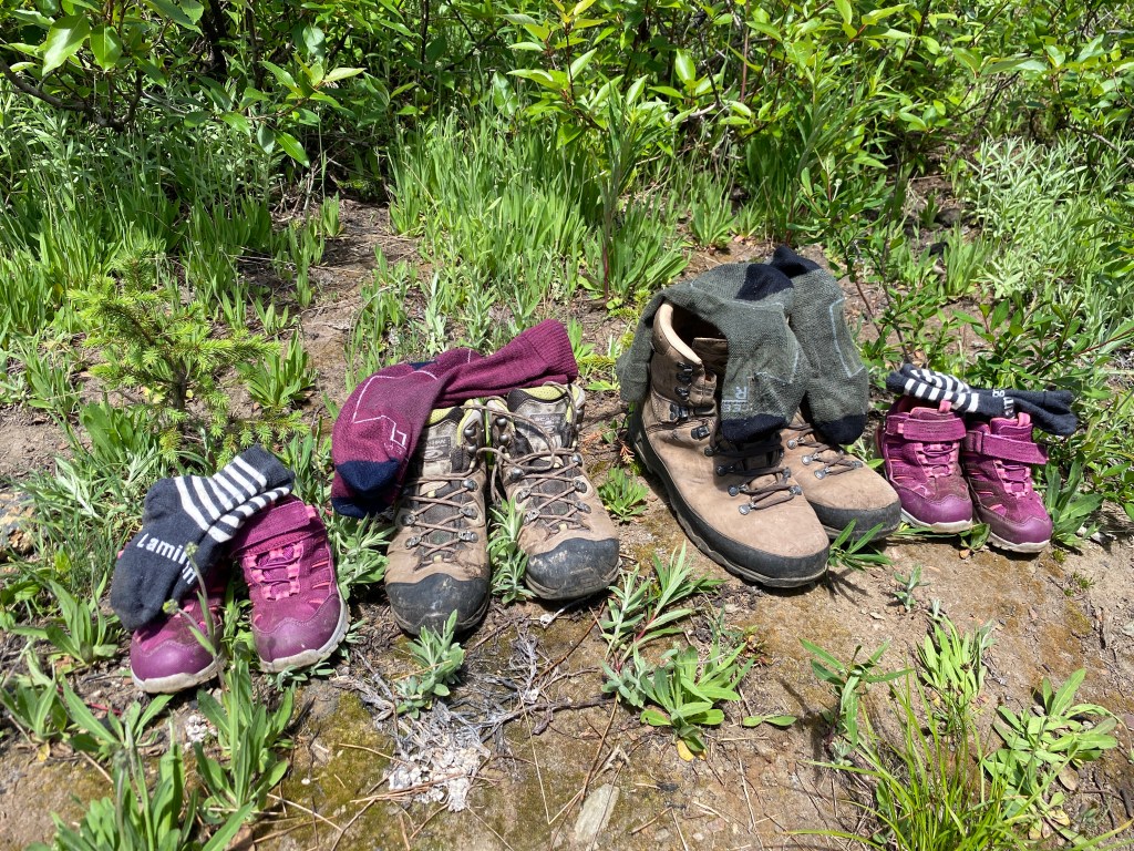 Merino wool socks are also a game changer. They not only help regulate temperature but also help reduce blisters as well with their amazing wicking properties. The girls wear Lamington brand. Tyson and I both wear Icebreaker.