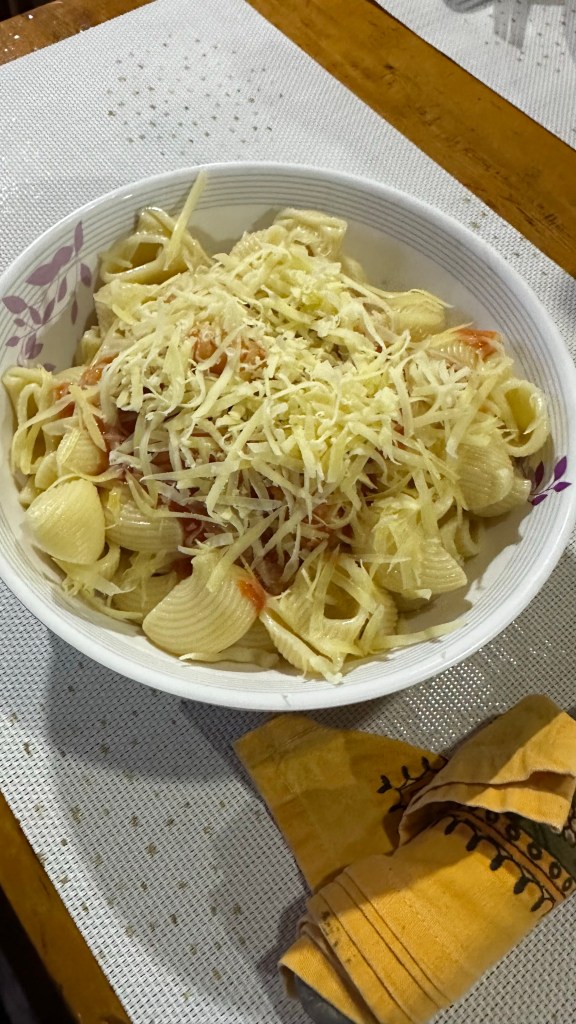 We dropped our bags of unwashed clothes and smelly sleeping bags before heading to the dining hall. The place was nearly empty with only a couple other trekkers on their way up. This did not discourage the unbelievable staff with their kind hearts. The girls were greeted with a warm smile and a small pack of Oreos as we sat down at a table. A round of steaming face clothes were soon present and it felt euphoric. The fireplace was already lit and the lodge was warm. Macaroni and pizza completed our dinner as we curled up by the fire for the remainder of the evening.