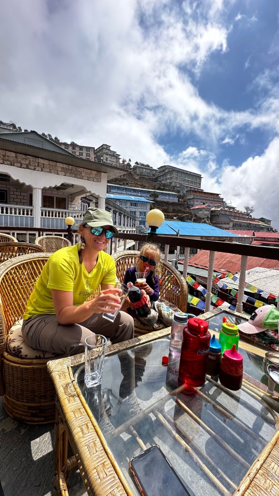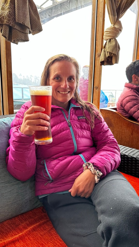 Once we all jumped back into our dirty hiking clothes we headed down to street level for a tour. There were shops and stalls in every direction. Vibrant prayer flags flapped over head along with an Irish Pub and pool hall. We slipped into the Everest Coffee House for a victorious slice of black forrest cake for the girls, and a large craft beer, in the solarium. The mountain views as well as the atmosphere was a perfect combination to wrap up our trekking time in the Himalayas.