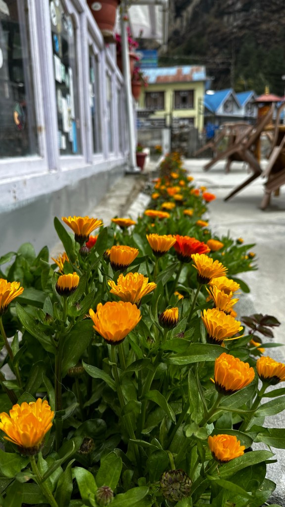 The air already felt so much thicker and more revitalizing. We now had some yellows and greens back in our colour spectrum. Tucked in behind the mountain the air was still cold and the day was getting late. We checked into the Himalayan Lodge (1000NRs) and instantly felt overwhelmed. This place seemed to be set out for royalty. The luxuries they provided were things we had not seen in numerous days now.