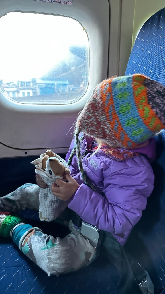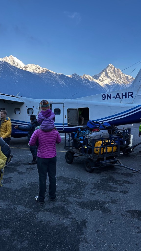 Upon doing so, Shannon and I both were forced to carry the girls the final 300 metres to the Tenzing-Hillary Airport wearing our slip on rubber shoes as the girls had nothing to put on their feet but their wool slippers.