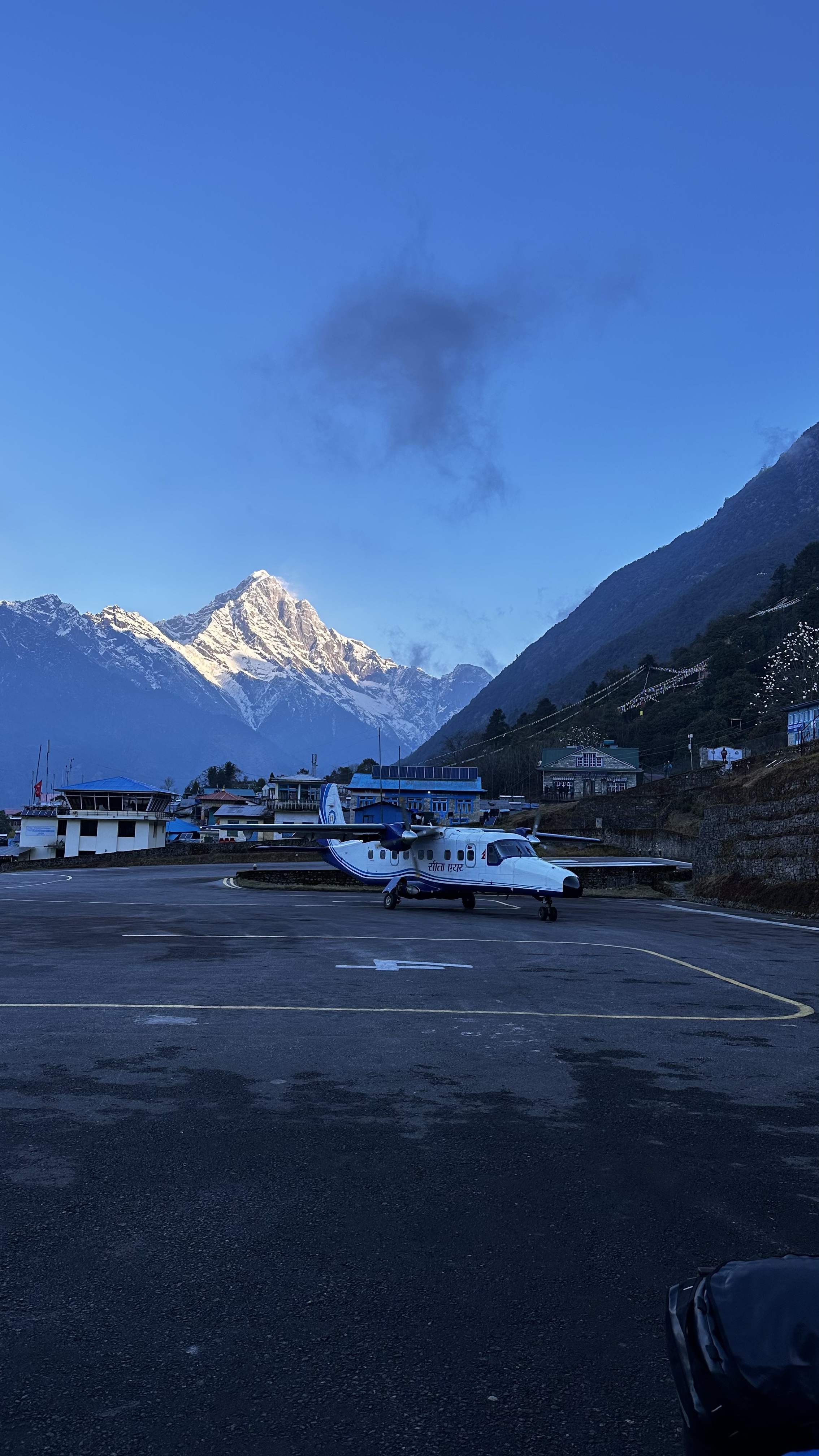 The sky was clear and crisp and the check-in process was as smooth as we hoped the flight would be. There is always the typical airport confusion with multiple airline companies and multiple lineups but once the basics were in order, us and many others were just left playing the waiting game. Soon we could see our little plane bobbing down the runway followed by two others hot on its tail. We were standing on the tarmac now as the door opened and a dozen fresh faces made their way down the five steps to their next life changing adventure. The smell of clean clothes wafted our direction. The thunderous noise of the engines was a dramatic shock to our system after the silence of nature that had filled our ears for so long. Once boarded on the all window seat plane we strapped ourselves down and waited for the door to close. The stubby descending runway made for a quick take off as we took to the air and the pilot navigated his way down the valley. Our 17 days in the mountain had officially come to an end and we were already missing it.