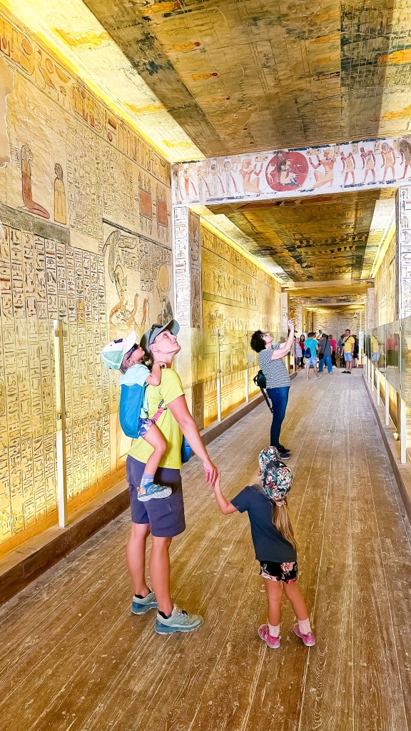 While before, we hired a private driver, this time around we arrived in Luxor after getting off a Nile cruise ship from Aswan. A guided tour was included in the package so this time it was loads more organized. Us and three others were to be picked up by air-conditioned minivan by 8:30 and start our day. But, come 10:30 we finally piled into a seemingly 1970’s three on the tree station wagon with missing window cranks. We were told the driver would drive us over the bridge and we would join the van at the Valley of the Kings. This ended up being true, however we were then told by our new van driver that because we were so late that we had to wait here until the others came back and we would join the rest of the tour. This would result in skipping one of the most famous parts of the West Bank and we wanted nothing of that. We basically said nope and made our way to the gates with no guide. Here we paid our 260LE entrance fee, 10LE shuttle and zoned in on our desired tombs. This can be the confusing part of the Valley of the Kings. With your entrance fee you can select any three of the 10 open tombs to tour, and are able to pay extra for three other special tombs. The problem here lies that you don’t know what tombs will be open before you arrive which makes it hard to research where you want to go in advance. As we were limited on time now we did a quick search and found three that sounded like it would be a perfect fit.