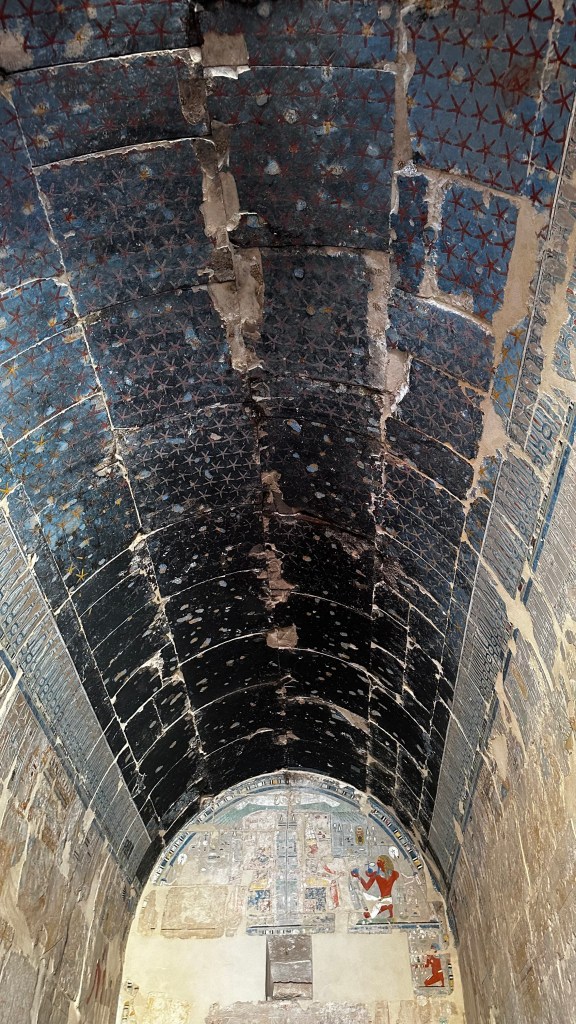 We toured through Tausert / Setnakht (KV14), a long and beautifully coloured two burial chamber from the 19th and 20th Dynasty that had minimal tourists at that moment in time. Rameses the third (KV11), another long and elaborate tomb lined with chambers and descent colour remaining on the walls and ceiling. Unfortunately for us it was quite busy resulting in an awkwardly rushed line up to the end of the passageway with heat and humidity making it rather uncomfortable. With our final visit being to Rameses the ninth (KV6), a shallower tomb from the 19th Dynasty with a large pit in the floor of the burial chamber. The walls have clear and defined carving lines with dramatic colours and elaborate ceiling. By now it was closing in on mid day, our guide had found us and was rushing us back to the van, all the while the temperatures through the windless rocky moonscape was well into the high 30’s by now. Us and a handful of others proceeded back to our waiting van before continuing on our way.