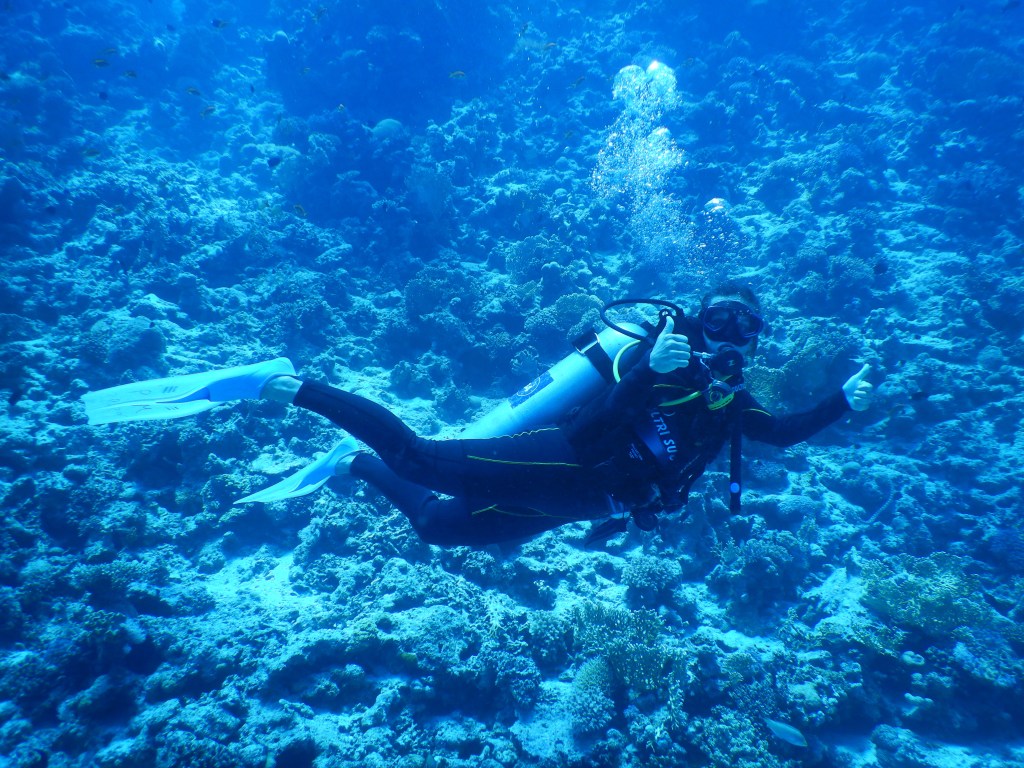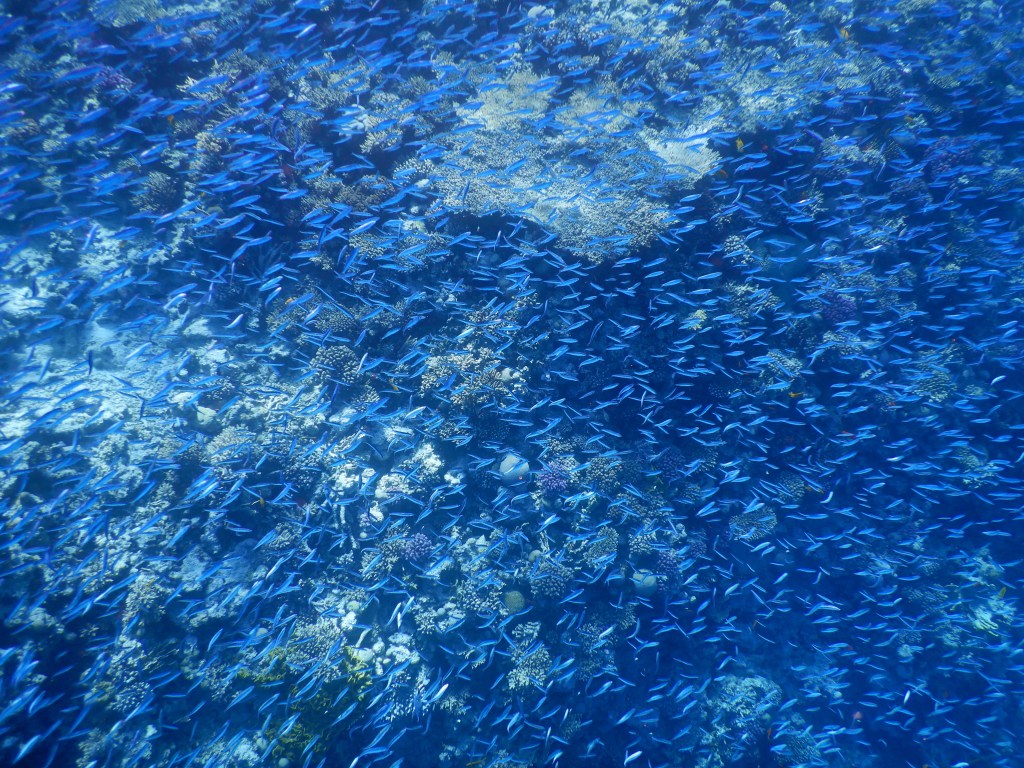 Both of these dives had so much to see. While they say it’s more famous for the coral, I would have to say it’s the colourful fish for us. The year round optimal condition and visibility of nearly 50 meters is a huge bonus as well. We have never come across any of the larger sea creatures in the Red Sea but it feels like you are swimming in an aquarium with all the spectacular colours. The fish are not nervous and just calmly swim around you.