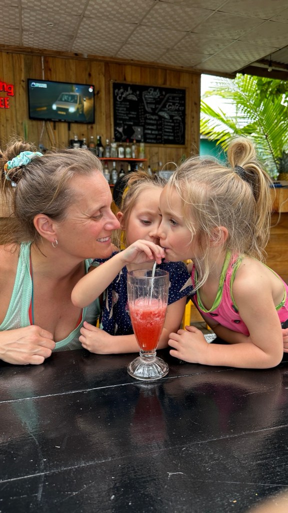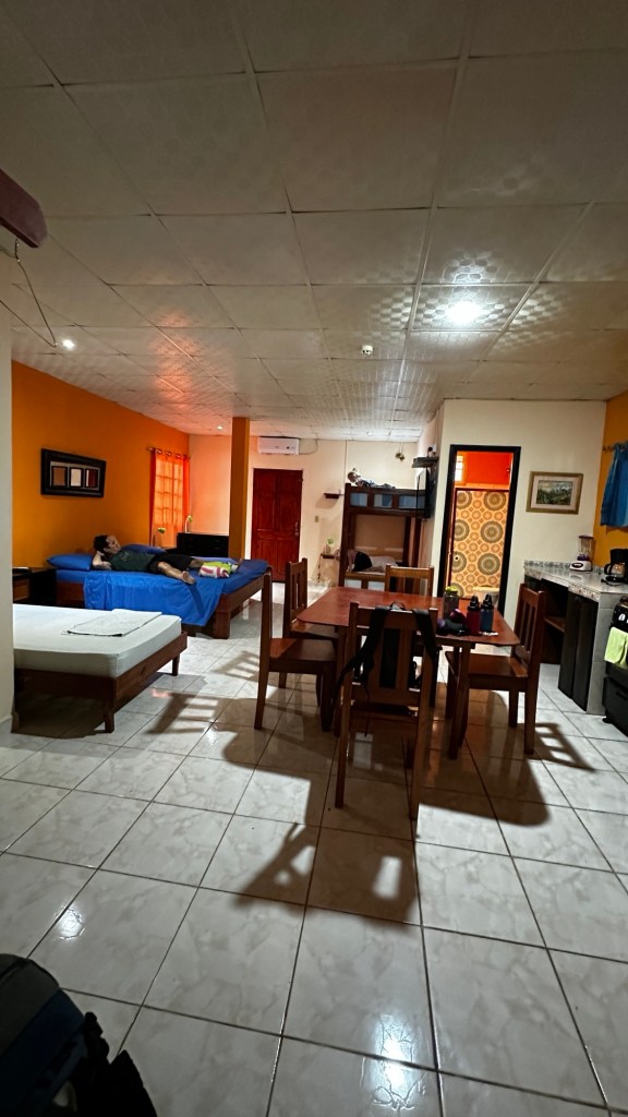 Christmas morning was full of excitement as the snacks the girls left were consumed and small presents and letters were exchanged in their spot. We spent the morning relaxing in the room while we exchanged greeting with families back home through the power of video calling. Many of the stores were closed today but we did manage to locate a fancy to us restaurant over the ocean where we treated ourself to a little bit of luxury. Popsicles and fresh pineapple rounded out the day as we settled back in our room for a family Christmas dinner of pizza followed by a bowl of cereal to fill the void before bed. All the excitement of the day had the girls exhausted and gave Shannon and myself time to organize and pack our bags as the following day. We were heading off the island and making our way north west to the boarder crossing with Costa Rica.