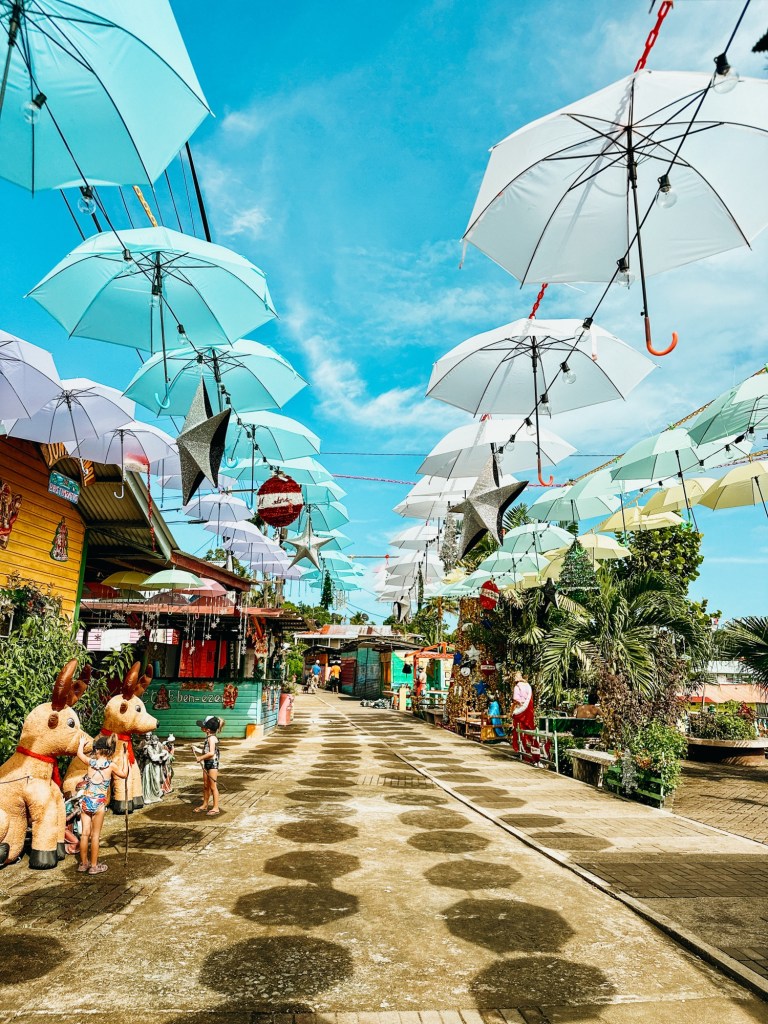 After getting our bearings and familiarizing ourselves with the lay of the land we enjoyed a peaceful dinner of fresh fish and fruit smoothies as we watched the boats putter by and the day turn to night. The ocean side swings and casual atmosphere foreshadowed the start of many more visits to this local establishment.