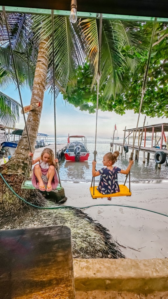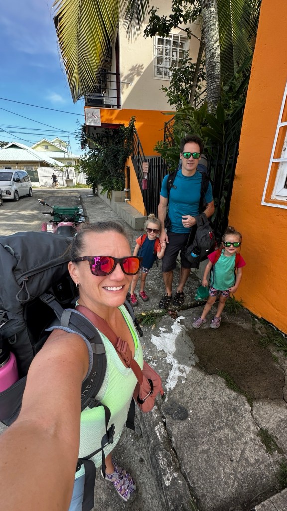 After chatting with the restaurant owner we were informed of a place called Starfish Beach. Apparently it is a located on the north west corner of the island and also involves a short beach and jungle walk to get to. They also mentioned that the starfish are everywhere and there are no waves so the girls can splash around in the water. We have just found tomorrows’ new activity! After an in-house breakfast we proceeded to the main square of town and hopped on the local public bus for $2.50. The 30 minute ride was crammed and sweaty but nothing we didn’t expect.