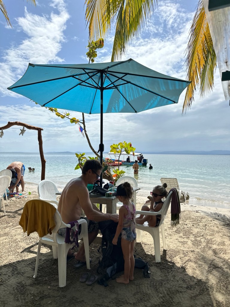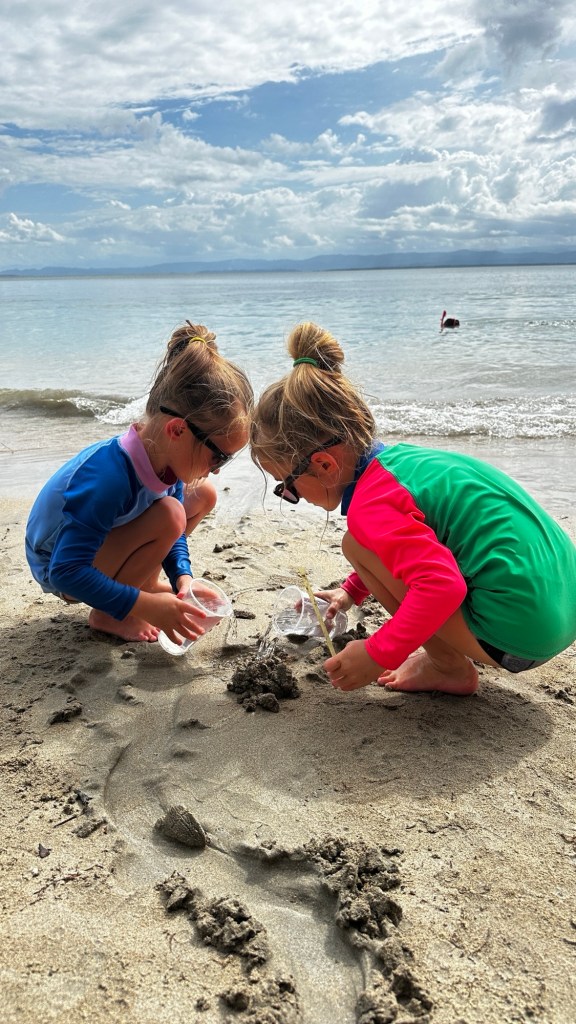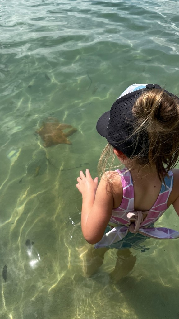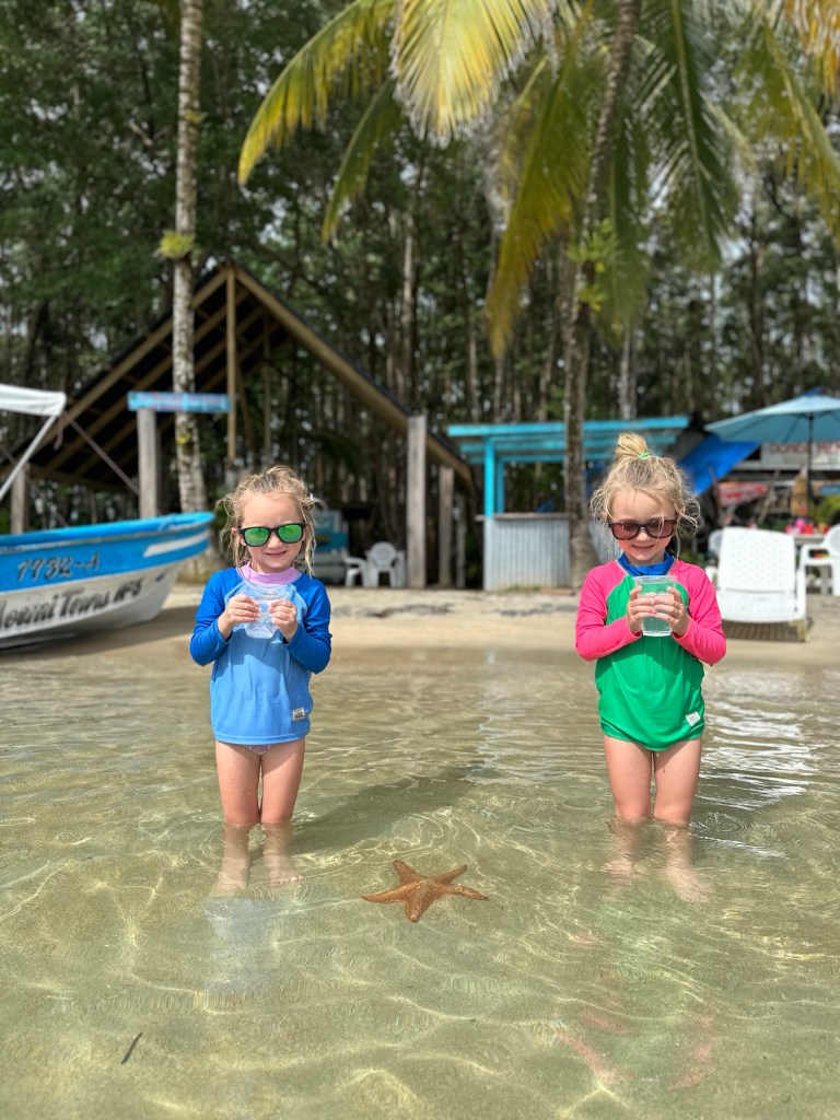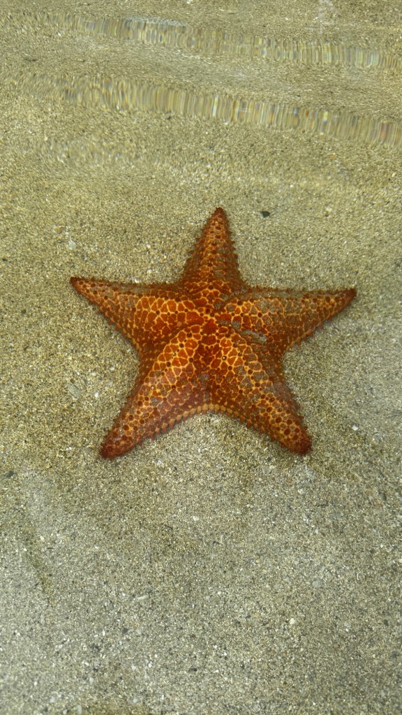 Without even stepping foot into the crystal clear water we can see how this beach got its name. Within seconds we could see five or six starfish. As we turned our heads left and right we quickly notice over a dozen. Eventually you stop counting. With goggles on we quickly head to the water. The dinner plate size sea stars sparked the interest of everyone around you. The girls were so excited and seemed to show enough respect to look but not to touch them without us having to say anything. Not quite knowing what we were getting into we had packed a lunch for ourselves but refreshing drinks returned to our table to keep us cool in the hot sun and humid air. We spent the continuing four hours digging in the sand, touring the beach and exploring below the water line.