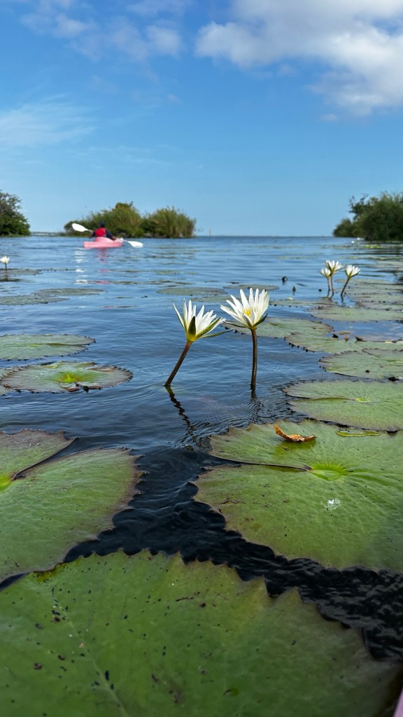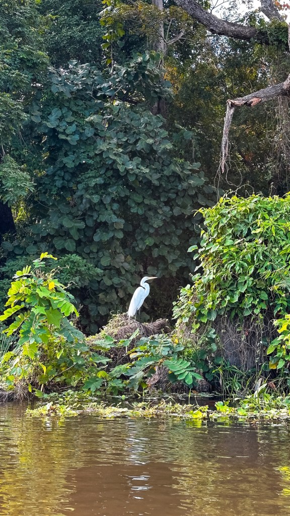 The surrounding waters started off rather less than appealing but dramatically improved in quality after a few paddle strokes. At first we were guided through towering trees with birds galore. The guide could somehow spot these things like he had just placed them there himself. This area is dotted with 365 little islands and I would have had myself lost after ten minutes of circling them time and time again. We wove through the calm waters as we watched both man and birds plucking fish from the water. White egrets would sit perched in a tree then take flight as we glided in to close.