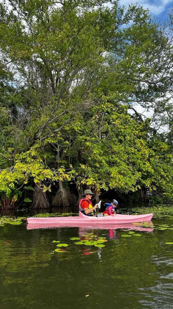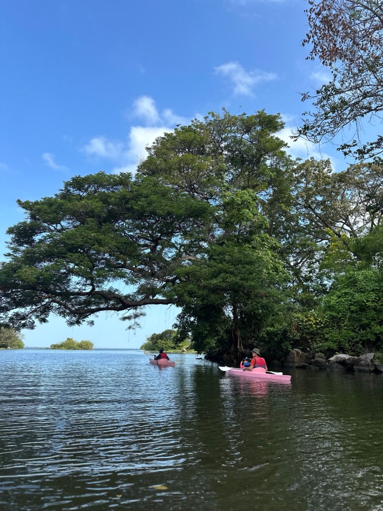 The following morning, after our included breakfast of rice, beans and eggs we were off to our next Granada experience, La Isletas. Down to the lakes edge we went where our noble pink steeds awaited. Life jackets on and girls between our knees we took to the water. The owners had somehow fibreglassed in a leg-less plastic patio chair that made it surprisingly comfortable.