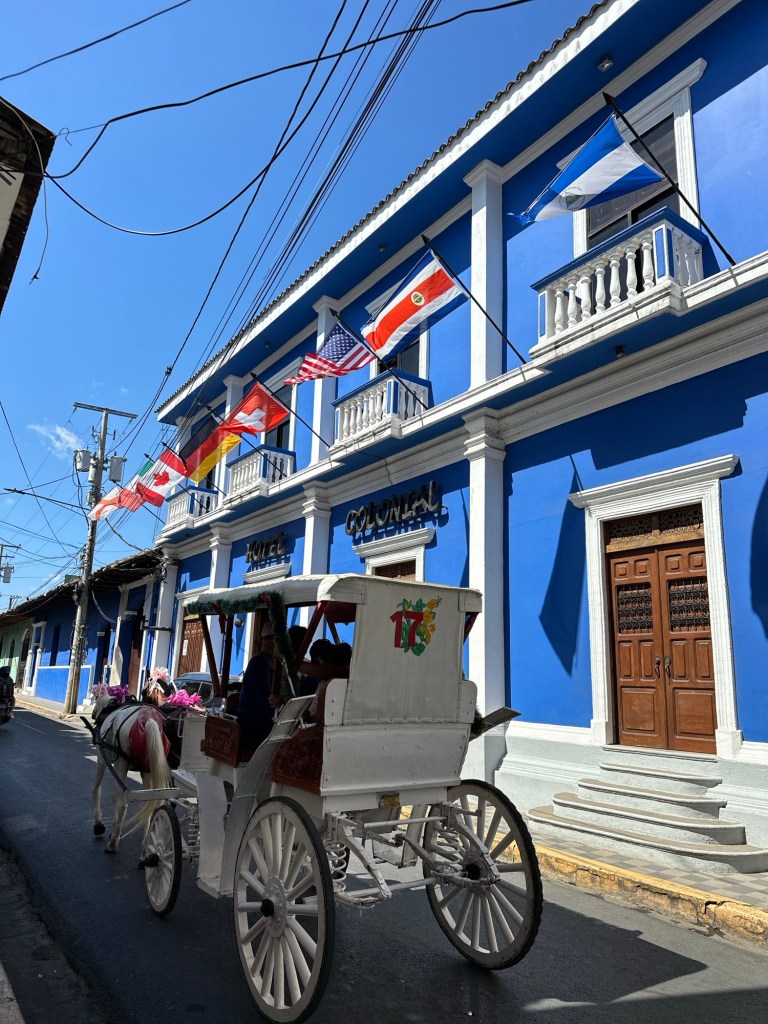 The chicken bus Los Rivas came to a stop on the edge of the main square in Granada. Rows of white horse drawn carriages lined the western edge of the Central Park as other bus’ continued past billowing out plumes of black smoke. After a short look on google maps we confirmed that we were dropped off within walking distance of our resting place for the next few nights.