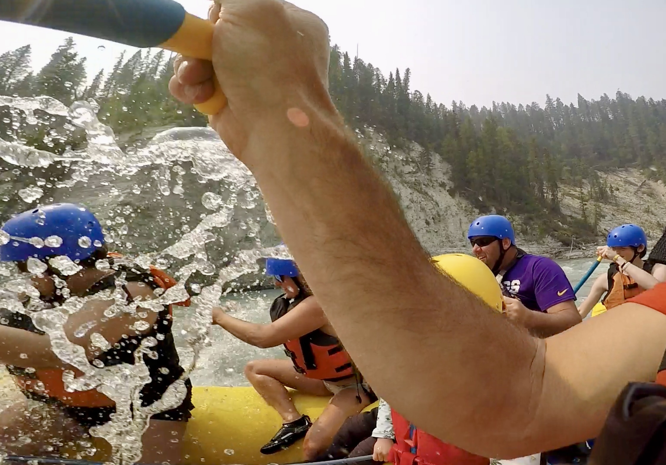 After a small section on the main highway we eventually shifted to an active mining road deep into the bush. The surprisingly nimble bus made short work of the gravel roads and tight turns. Before long we were stopped at our put in point on the banks of the Kootenay River. Once unloaded we were divided into groups and all joined in on a short safety briefing. Before we knew it we were pushing off shore and getting carried away down stream with the swift current.