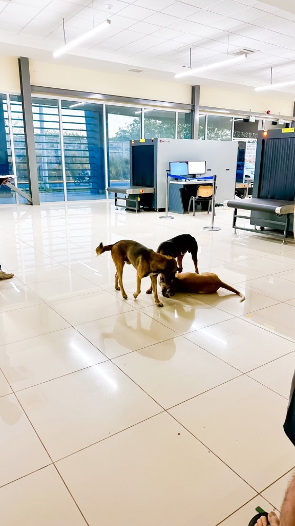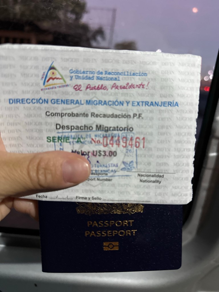 Arriving at 5:55 am and still darkness, the shuttle parked and the drivers went to go get us our Nicaragua exit cards while we waited in the vehicle. Once the sun came up it was time to cross. We then drove to the Nicaragua immigration building where they took our passports along with $10 USD for the exit fee to get stamped out of the country. We then had to bring all our bags inside and put them through the x-ray scanner. This was a bit of a wait as no one seemed to be running the scanner. We waited patiently as the line continued to grow behind us. Also, a pack of stray dogs decided to enter the building and greet everyone and wrestle amongst us all. The girls were not a fan of this and neither were we really. These dogs were nipping a bit at some of the guys in the lineup. After a good 15 minute wait someone returned to their post and we sent our bags through. This entire process took 1.5 hours, including a stop at some highly neglected bathrooms.