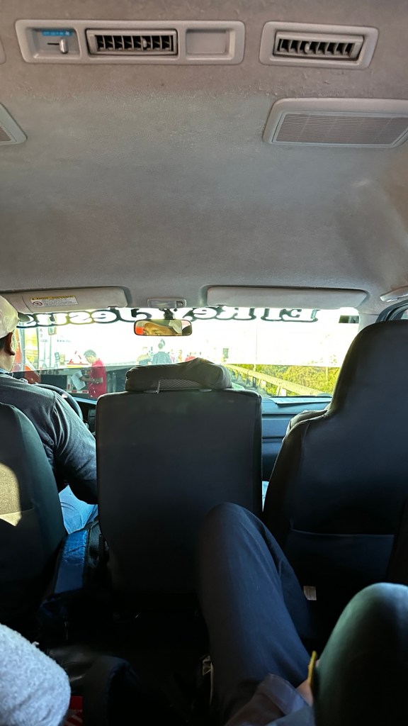 The entire trip for us took 12 hours with two fully assisted border crossings, with english speaking drivers and was safe, comfortable and having only 7 people in the 9 seater van gave us room to spread out and store our bags inside rather than on the roof rack. Any long road trip will take it out of you but we were more than happy with the shuttle service rather than the other travel options between the two countries.