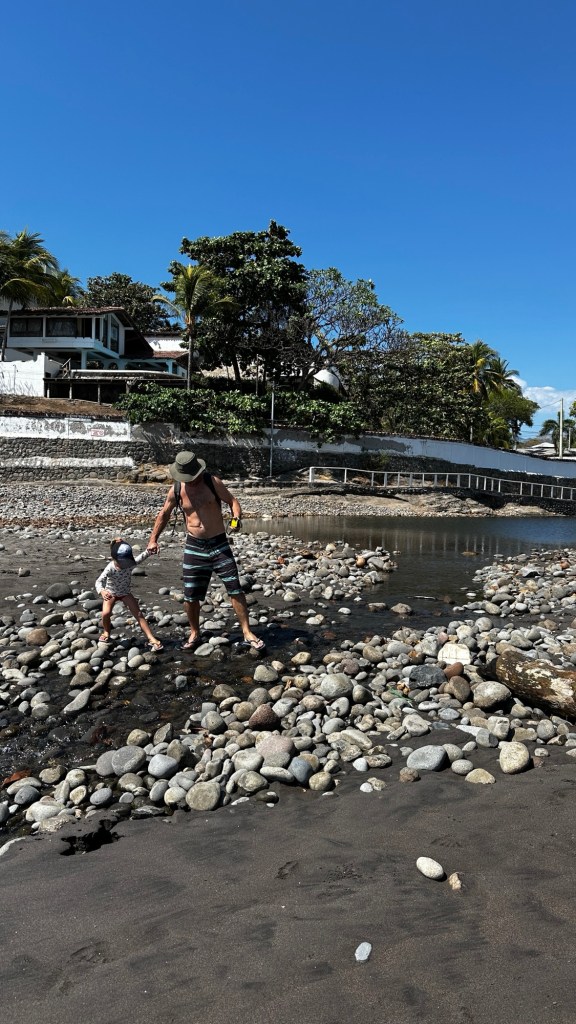 Another side trip had us walking the beach to the east this time with endless black sand both long and wide. Playa Majahual was 100% dominated by locals enjoying the highlights that their beautiful little country has to offer. Families packed lunches, games of soccer in the sand and smiles and laughter was visible with every step. After so many years of turmoil in El Salvador it is rewarding to see so many happy and friendly residents finally getting the chance to enjoy their home country. As we watched the waves crash in and our two little girls running free I could not even begin to imagine what it would have been like for kids growing up here just a couple years back.