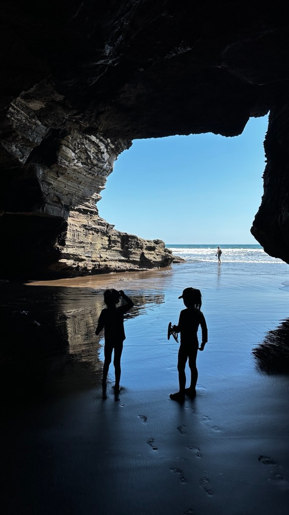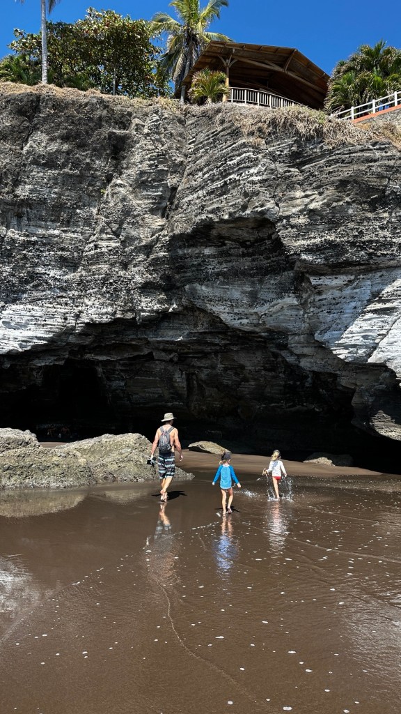 Being low tide we took a chance and attempted to walk the beach back to our hotel. Being unsure on the water levels we had our fingers crossed that we could make it all the way and not have to return back the way we arrived. This little improvised adventure ended up being one of the highlights of our time here. As the girls searched for shells we noticed the undercut cliff edge had multiple tunnels that allowed us to explore further. Having daylight on the other side we knew we could exit the system and not have to wade through some of the waves. This pleasant surprise of a shortcut returned us back to our hotel and will always leave a memorable moment etched in our minds.