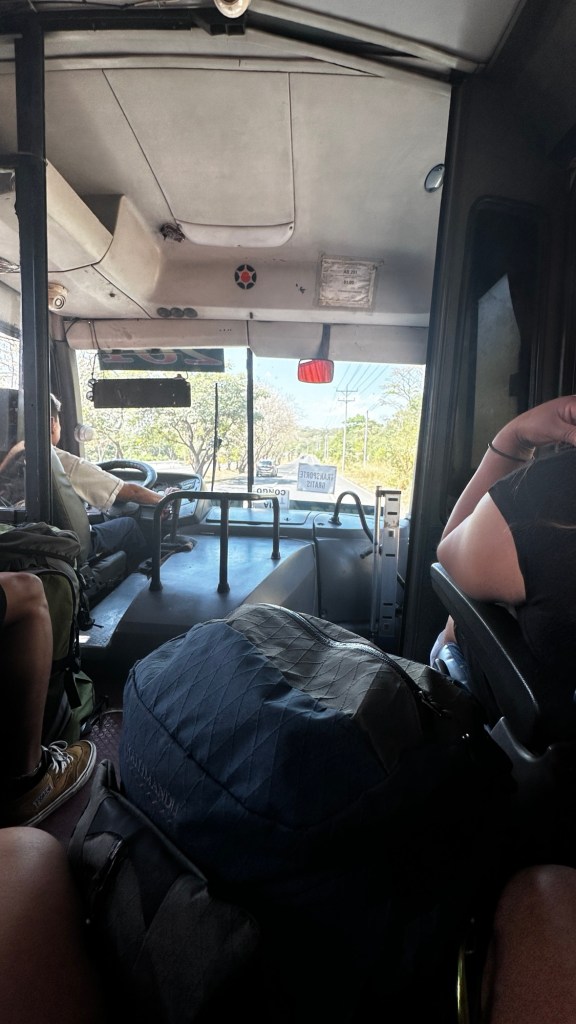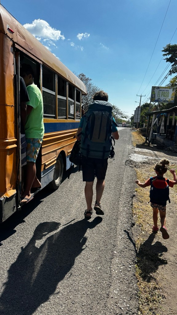 With only a small handful of nights reserved here we soon found ourselves loading our packs up once again and boarded the chicken bus on the side of the road. A 15-minute ride dropped us off in La Libertad, then a connecting bus towards the nations capital of San Salvador (which bonus, was airconditioned). The girls were not super impressed when they had to sit next to a lovely lady who was very fond of them but they were way too shy to speak to her. We then did a second transfer in San Salvador and headed inland toward the second most populated city in the country, Santa Ana.